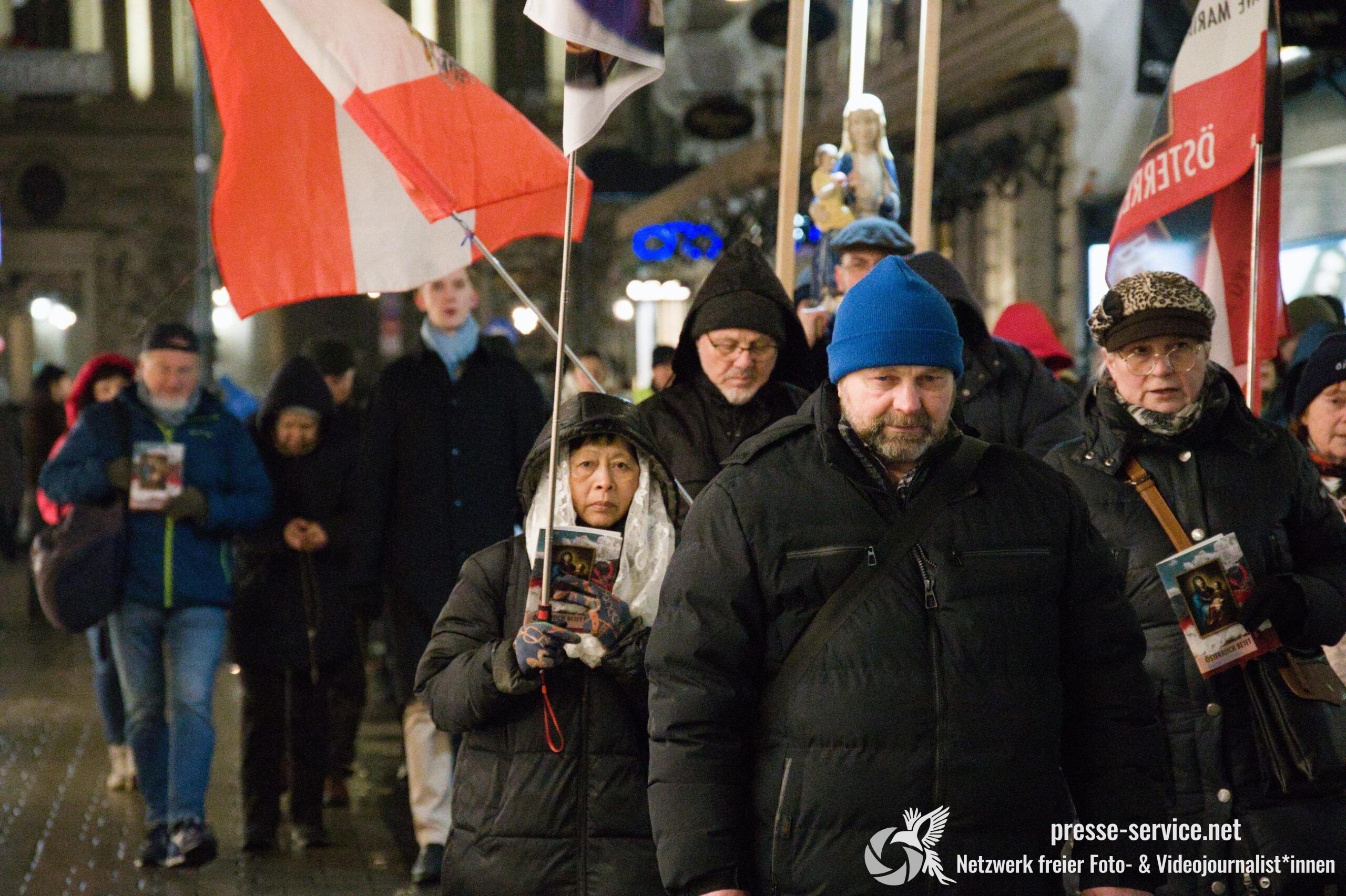 Am 4. Februar 2026 trafen sich etwa 50 religiöse Fundamentalist*innen zu einer Rosenkranzprozession, die von der Initiative „Österreich betet“ organisiert wurde. Die Gruppe versammelte sich am Minoritenplatz und zog von dort aus betend über den Michaelerplatz und den Graben zum Stephansplatz. Diese Prozession war eine von neun Veranstaltungen, die zeitgleich in mehreren Landeshauptstadten Österreichs abgehalten wurden.