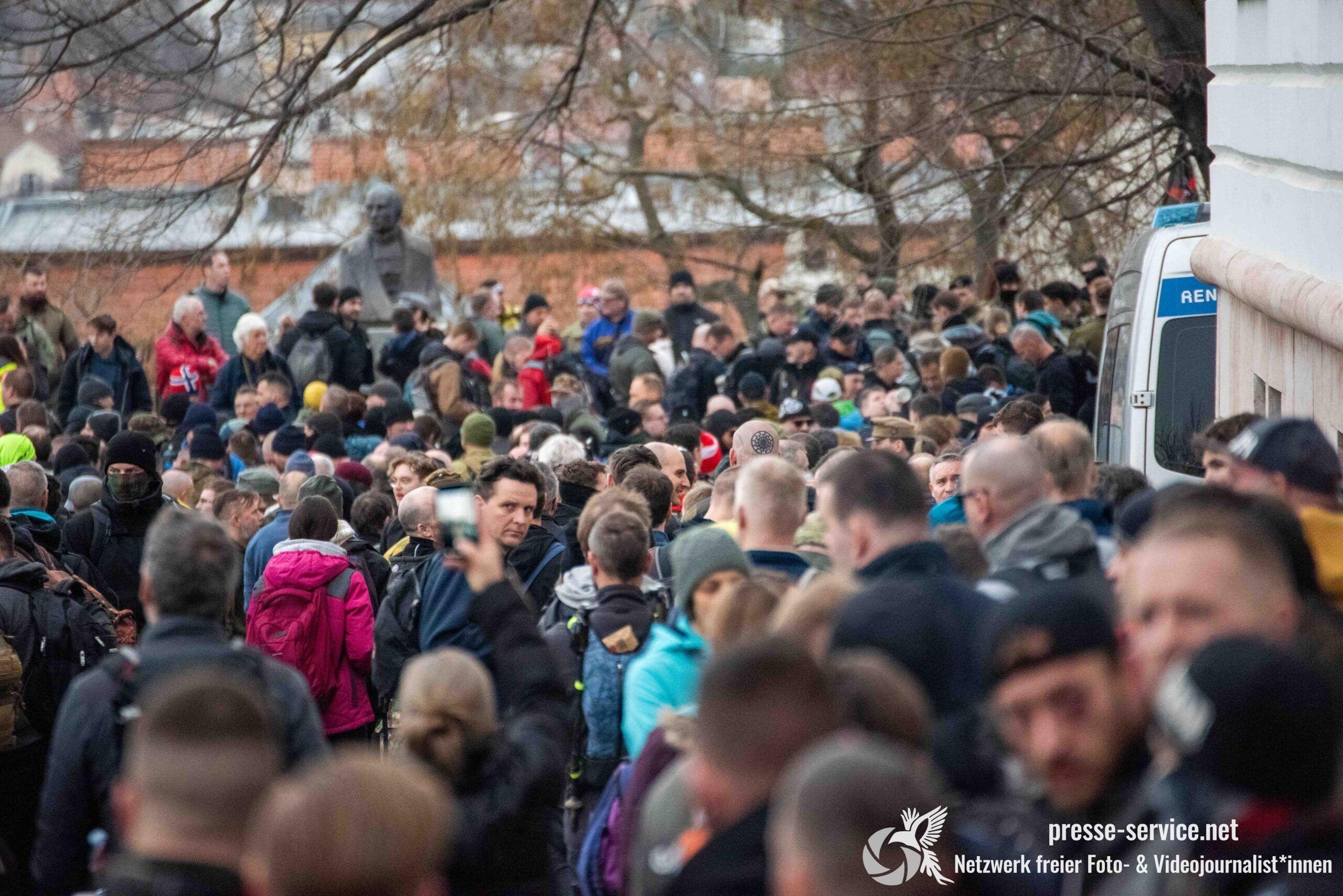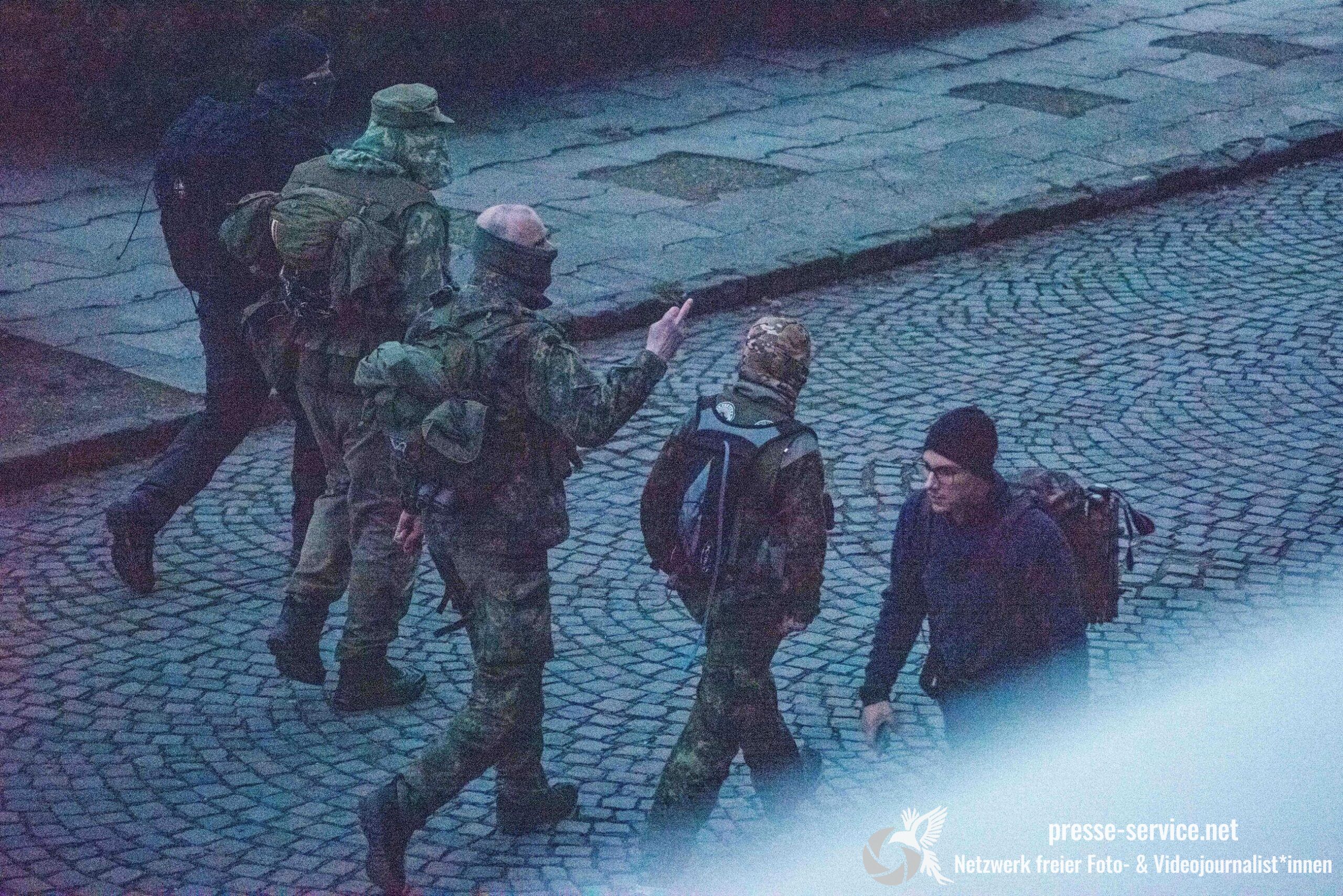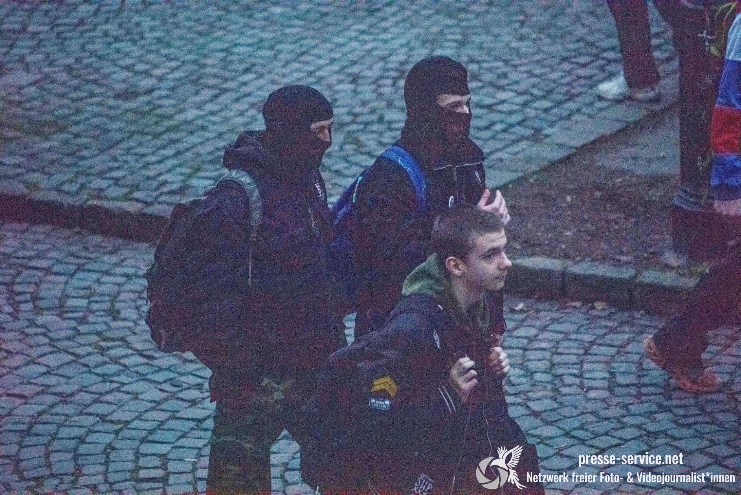 Während der Beobachtung vor Ort wurden wiederholt aggressive Zurufe gegenüber Journalist*innen laut. Sprüche wie „Antifa-Fotzen“, „Antifa-Schweine“ oder „Hängen werdet ihr alle“ waren hörbar.
