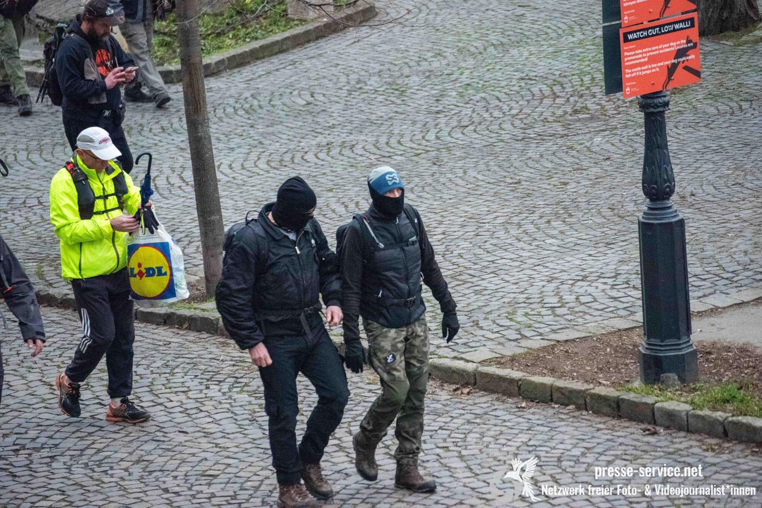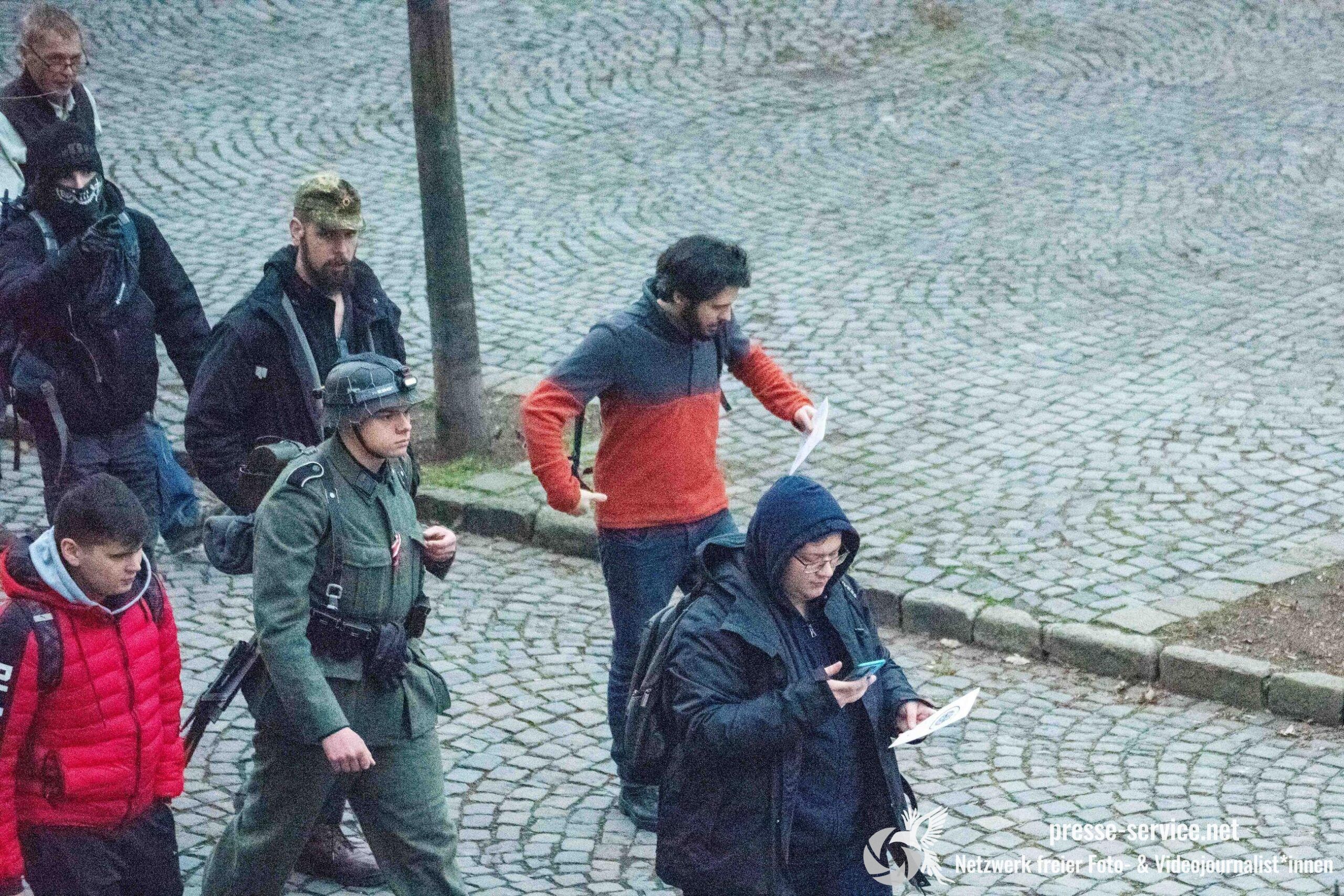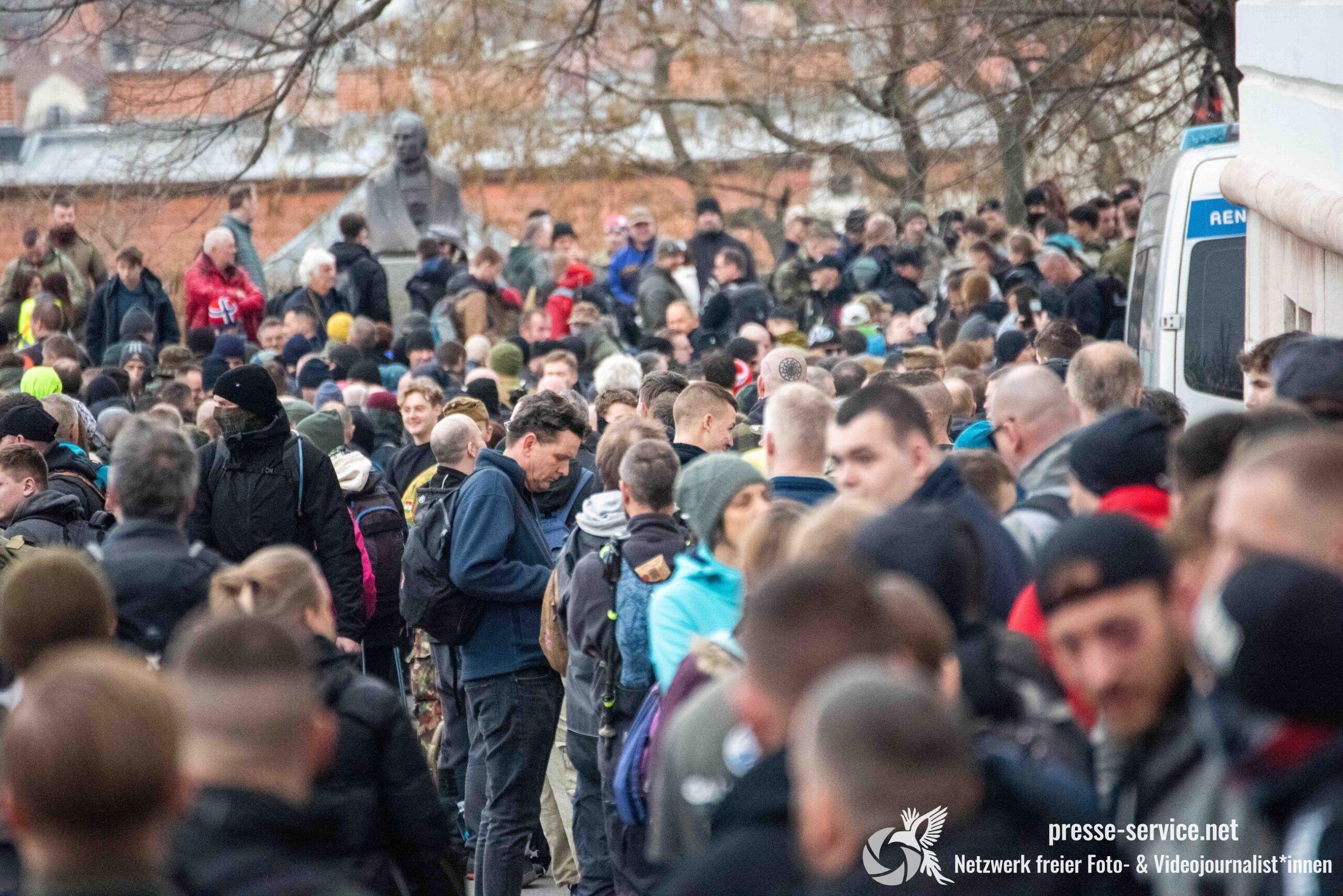 Während der Beobachtung vor Ort wurden wiederholt aggressive Zurufe gegenüber Journalist*innen laut. Sprüche wie „Antifa-Fotzen“, „Antifa-Schweine“ oder „Hängen werdet ihr alle“ waren hörbar.