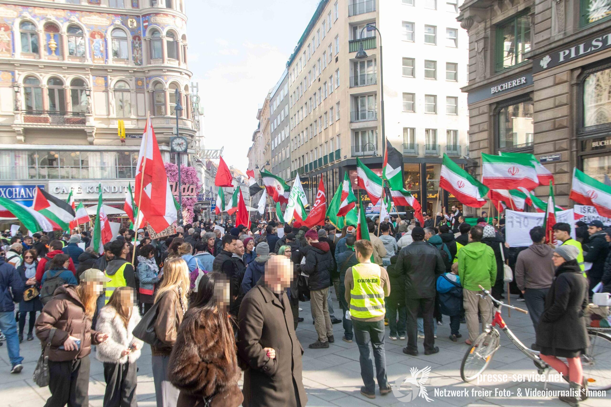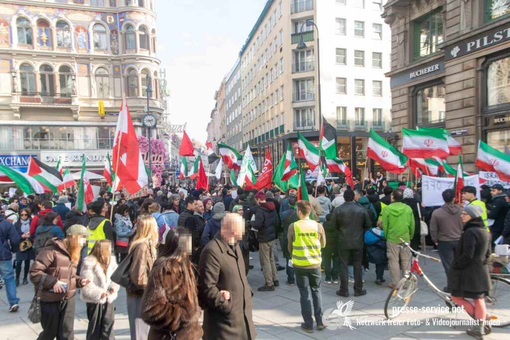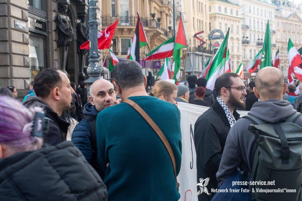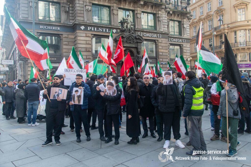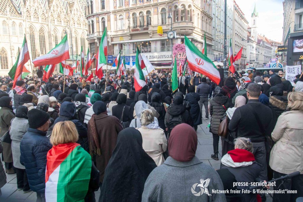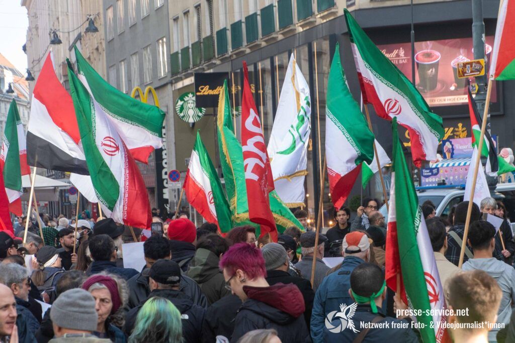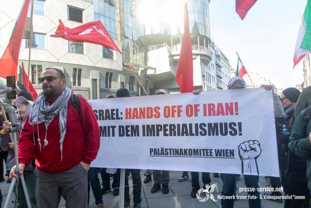 Am 01.03.2026 fand am Wiener Stock-Im-Eisen-Platz eine Solidaritätskundgebung für das islamistische Regime im Iran statt. Anlass war die Offensive der USA und Israels gegen den Iran, die seit dem 28.02.2026 andauert. Zur Kundgebung riefen u.a. die linken antisemitischen Gruppen „Antiimperialistische Koordination“ sowie „Palästinasolidarität“ auf. Insgesamt haben rund 25 antiisraelische Gruppen und Organisationen, etwa „Kommunistische Jugend Österreich“ (KJÖ), „Palästina Komitee“, „Stimmen für Neutralität“ sowie die „Föderation demokratischer Arbeitervereine aus der Türkei“ (DIDF) und „Linkswende“ die Kundgebung unterstützt bzw. zu dieser mobilisiert.