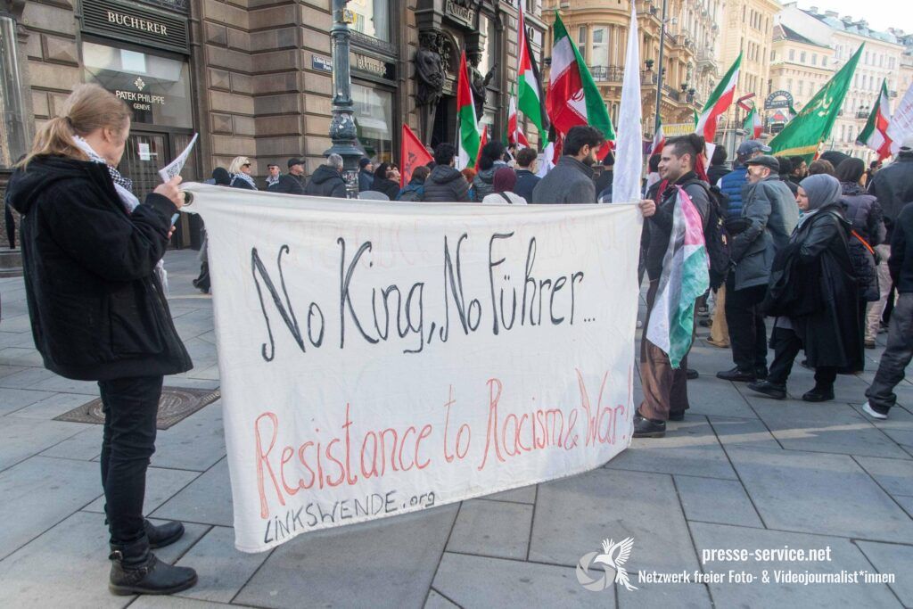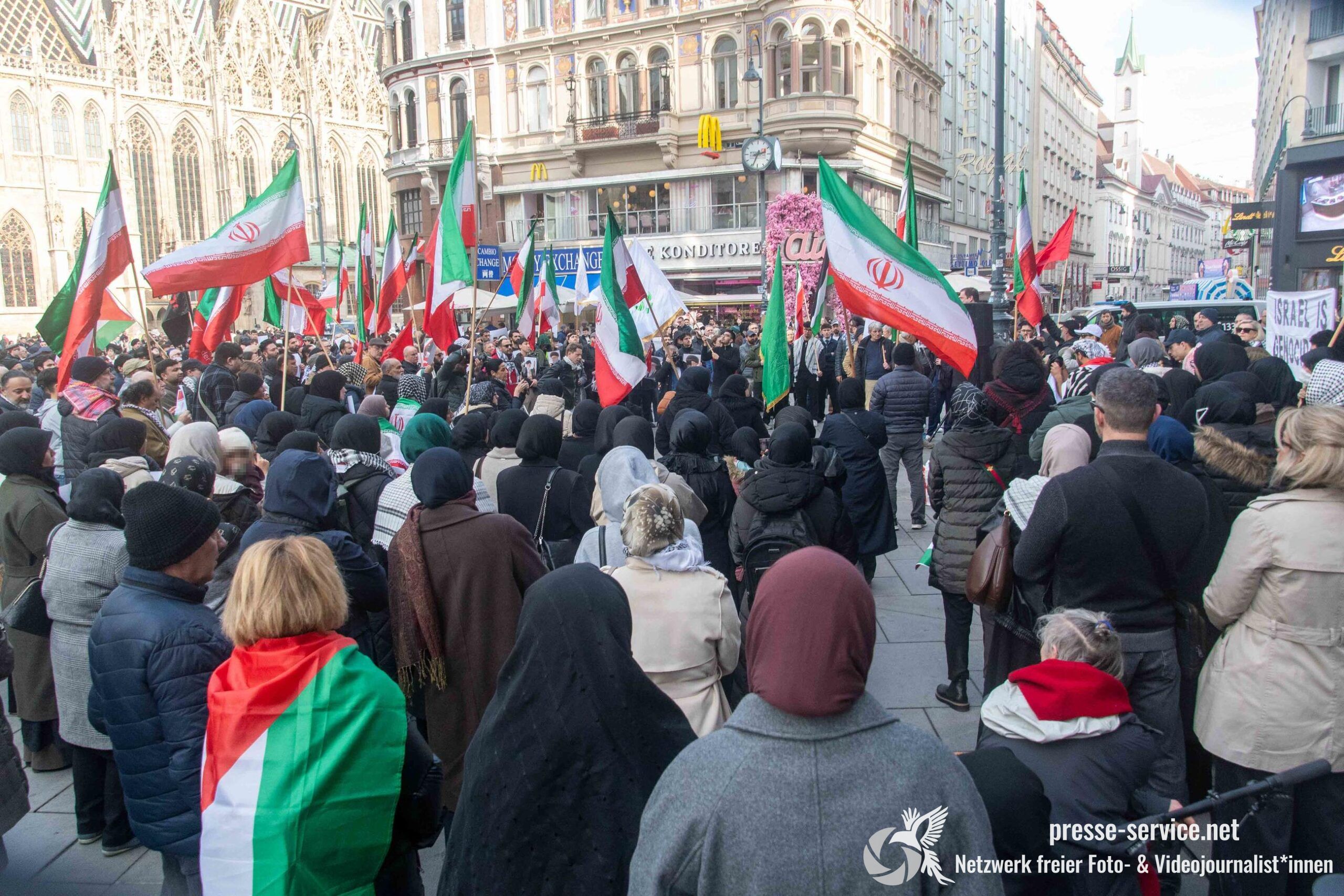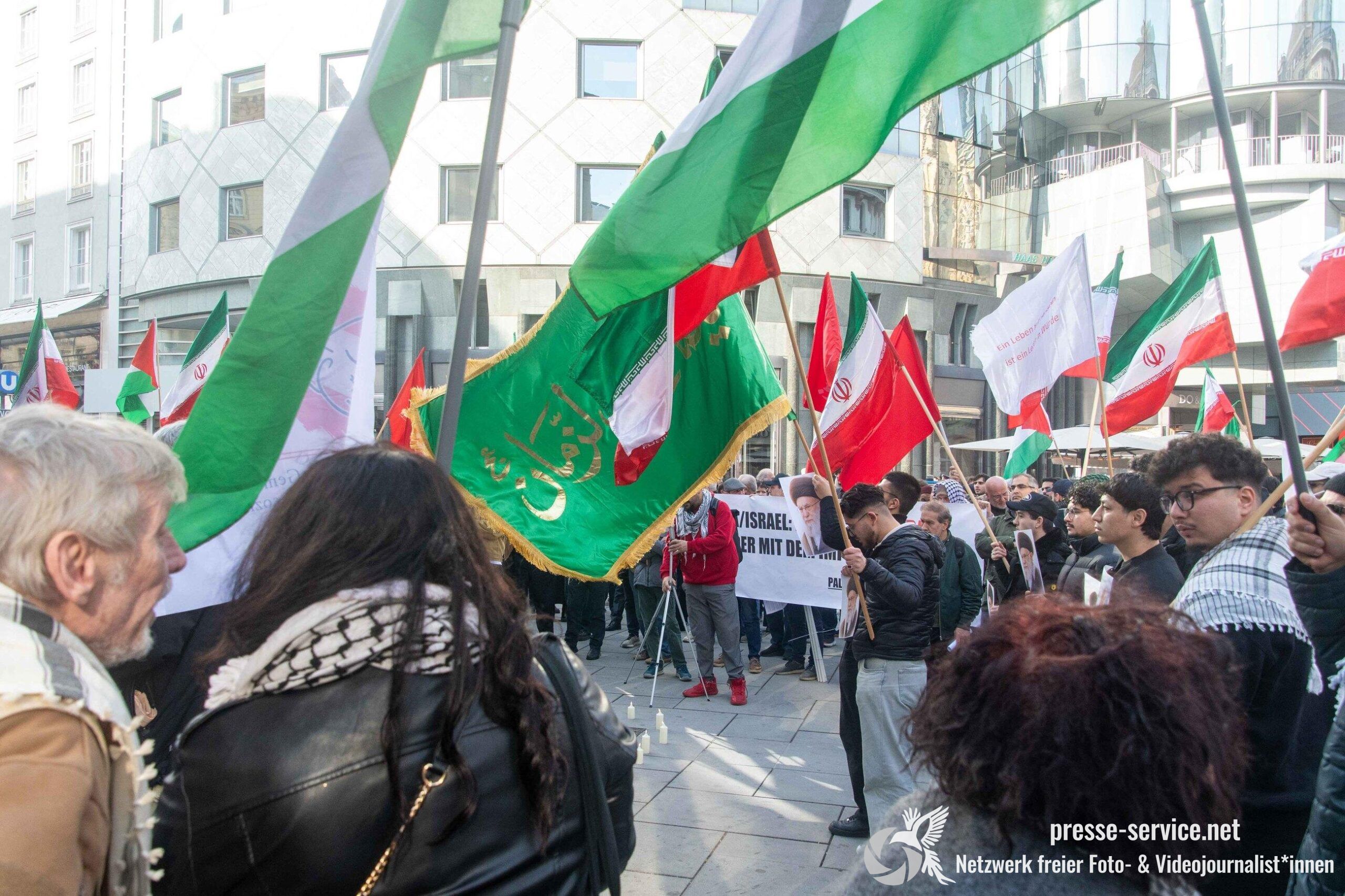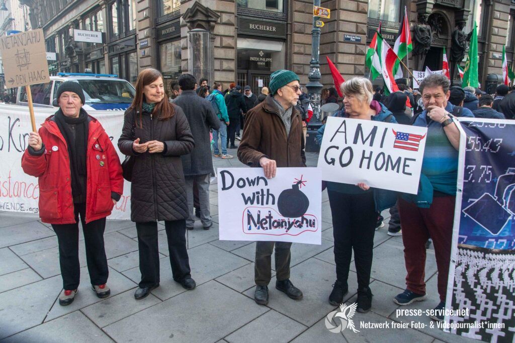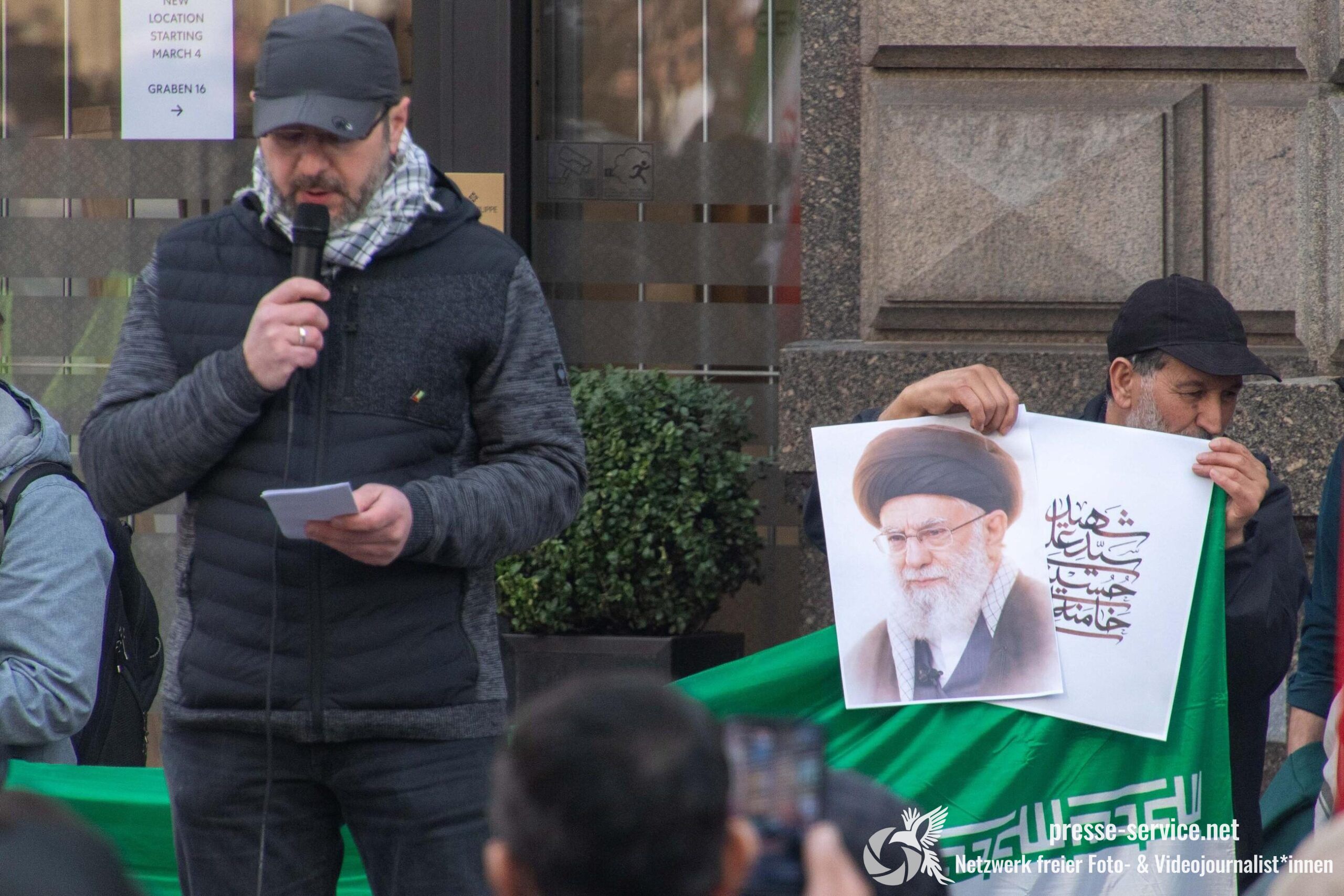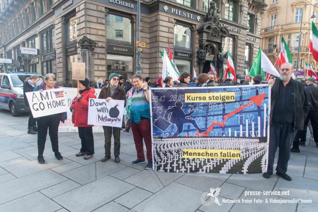 Am 01.03.2026 fand am Wiener Stock-Im-Eisen-Platz eine Solidaritätskundgebung für das islamistische Regime im Iran statt. Anlass war die Offensive der USA und Israels gegen den Iran, die seit dem 28.02.2026 andauert. Zur Kundgebung riefen u.a. die linken antisemitischen Gruppen „Antiimperialistische Koordination“ sowie „Palästinasolidarität“ auf. Insgesamt haben rund 25 antiisraelische Gruppen und Organisationen, etwa „Kommunistische Jugend Österreich“ (KJÖ), „Palästina Komitee“, „Stimmen für Neutralität“ sowie die „Föderation demokratischer Arbeitervereine aus der Türkei“ (DIDF) und „Linkswende“ die Kundgebung unterstützt bzw. zu dieser mobilisiert.