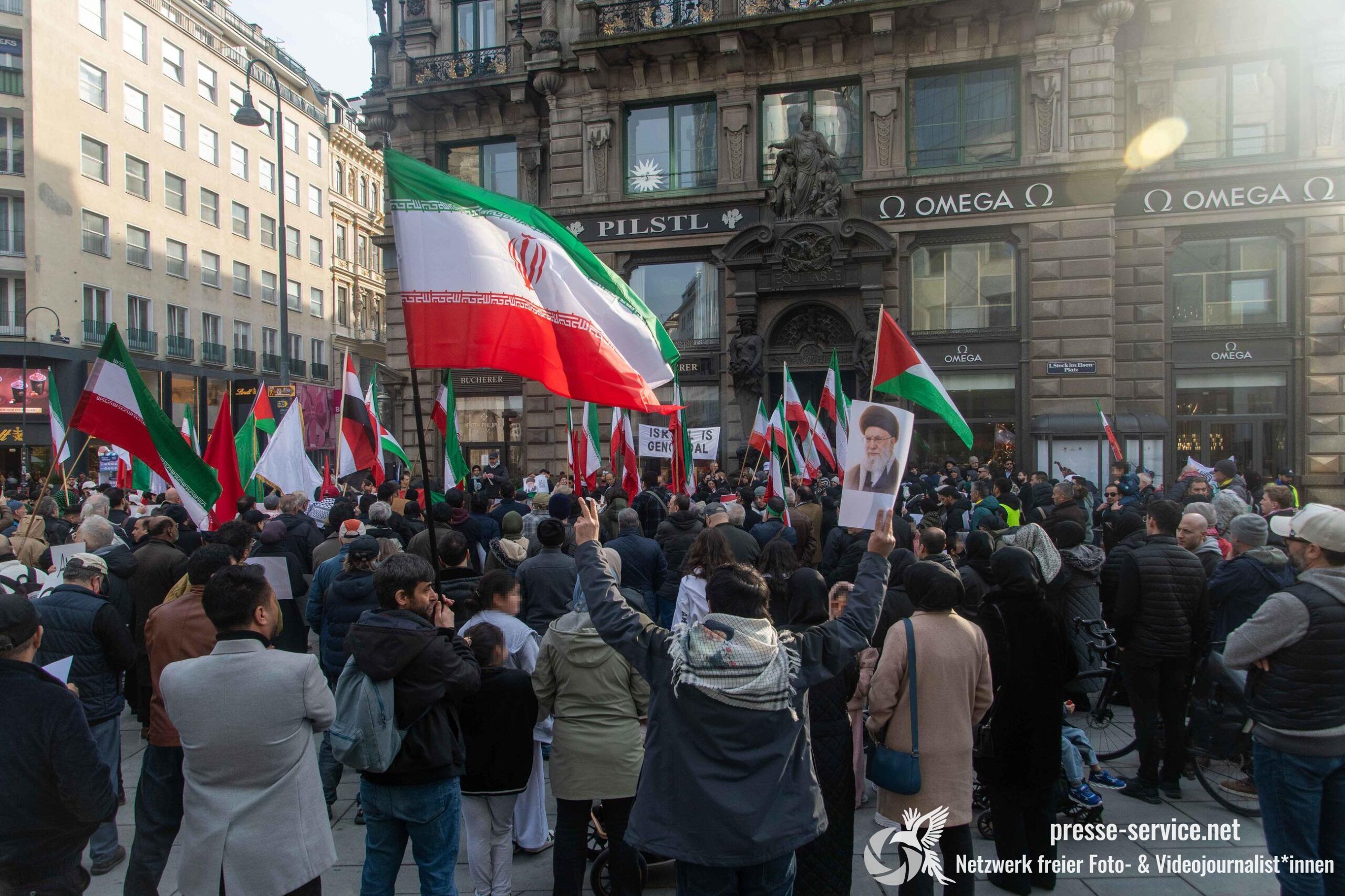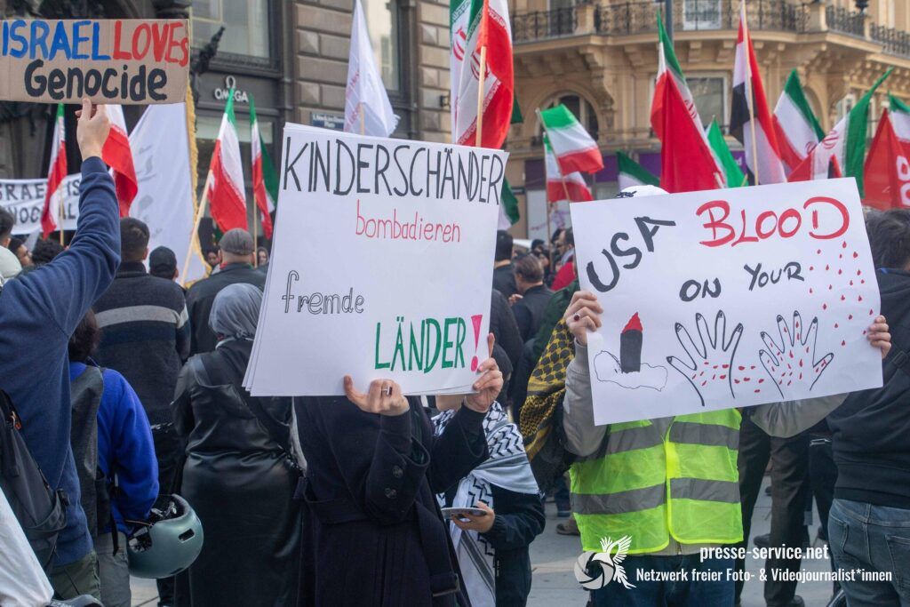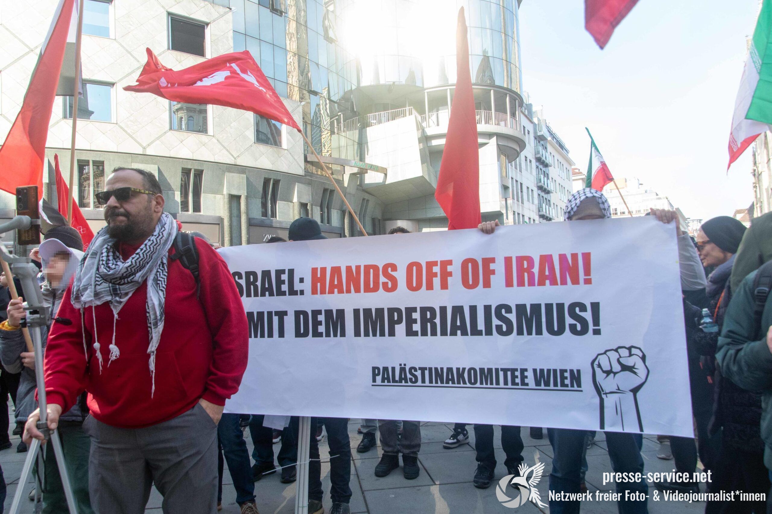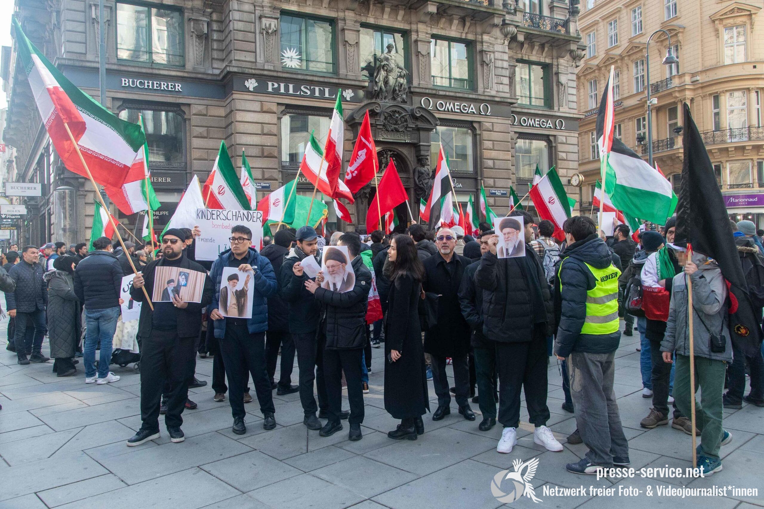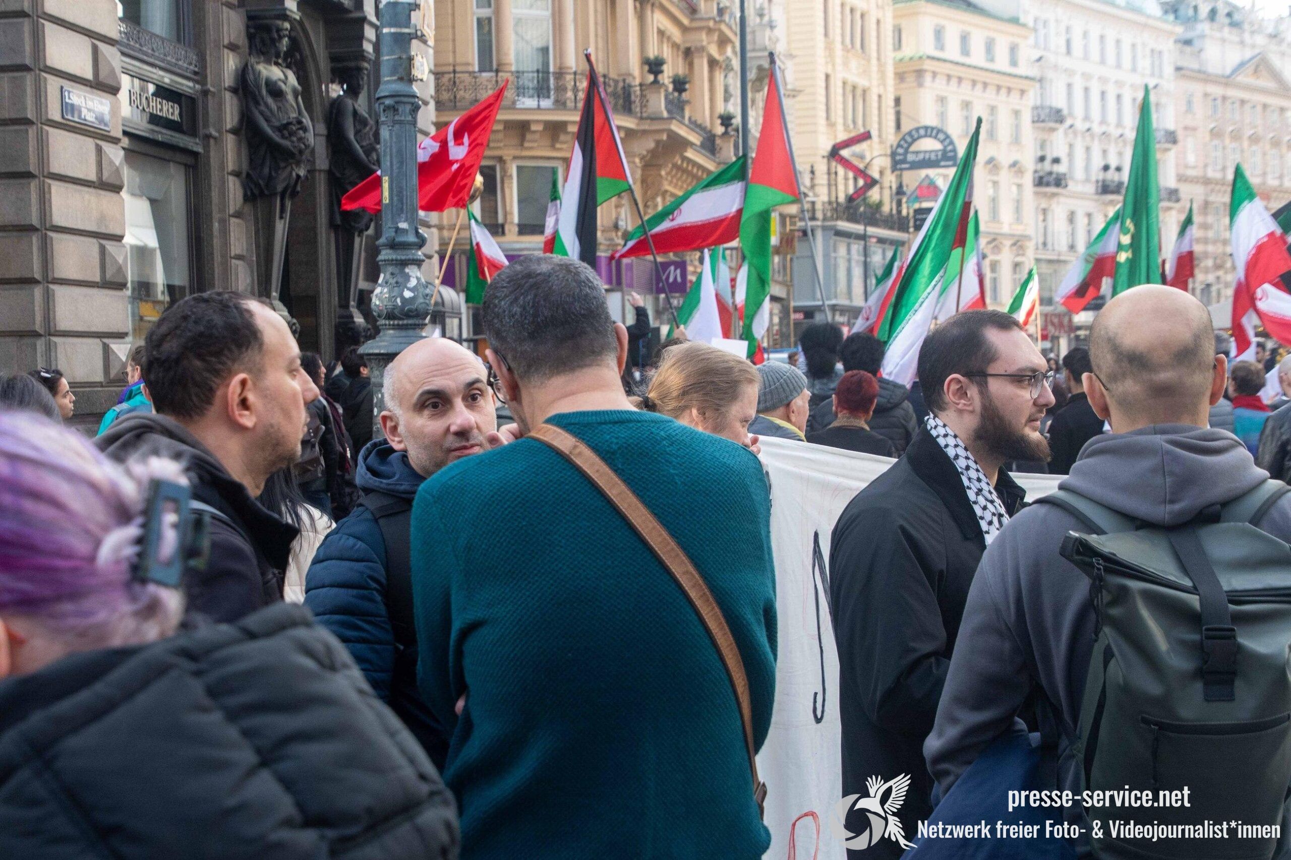 Am 01.03.2026 fand am Wiener Stock-Im-Eisen-Platz eine Solidaritätskundgebung für das islamistische Regime im Iran statt. Anlass war die Offensive der USA und Israels gegen den Iran, die seit dem 28.02.2026 andauert. Zur Kundgebung riefen u.a. die linken antisemitischen Gruppen „Antiimperialistische Koordination“ sowie „Palästinasolidarität“ auf. Insgesamt haben rund 25 antiisraelische Gruppen und Organisationen, etwa „Kommunistische Jugend Österreich“ (KJÖ), „Palästina Komitee“, „Stimmen für Neutralität“ sowie die „Föderation demokratischer Arbeitervereine aus der Türkei“ (DIDF) und „Linkswende“ die Kundgebung unterstützt bzw. zu dieser mobilisiert.
