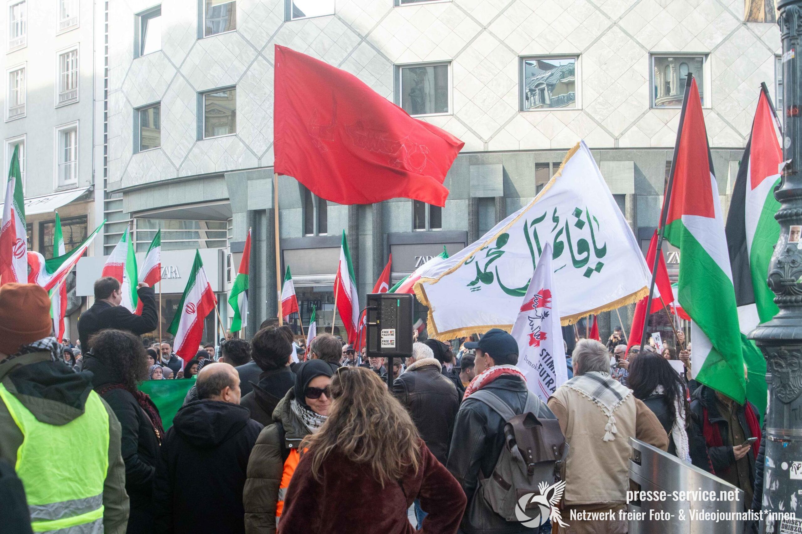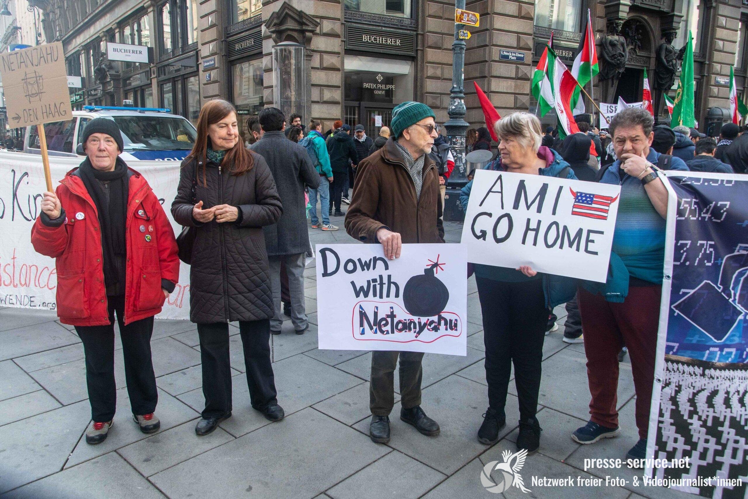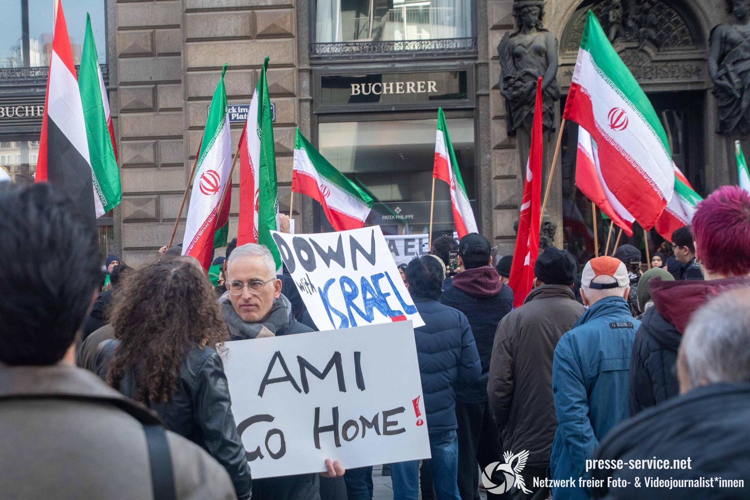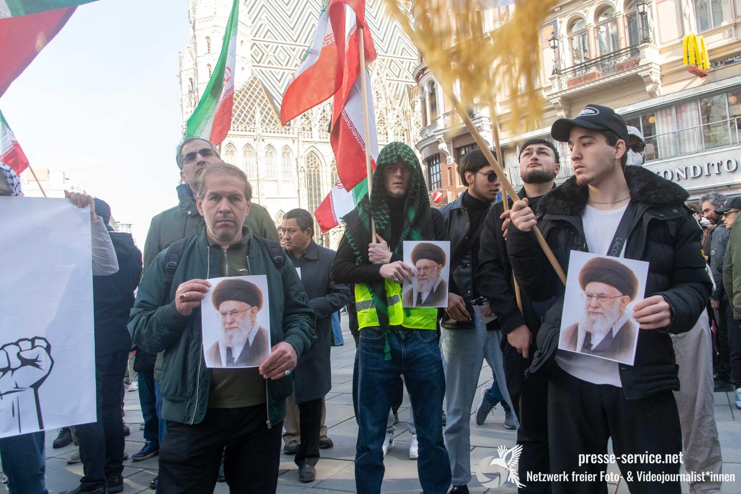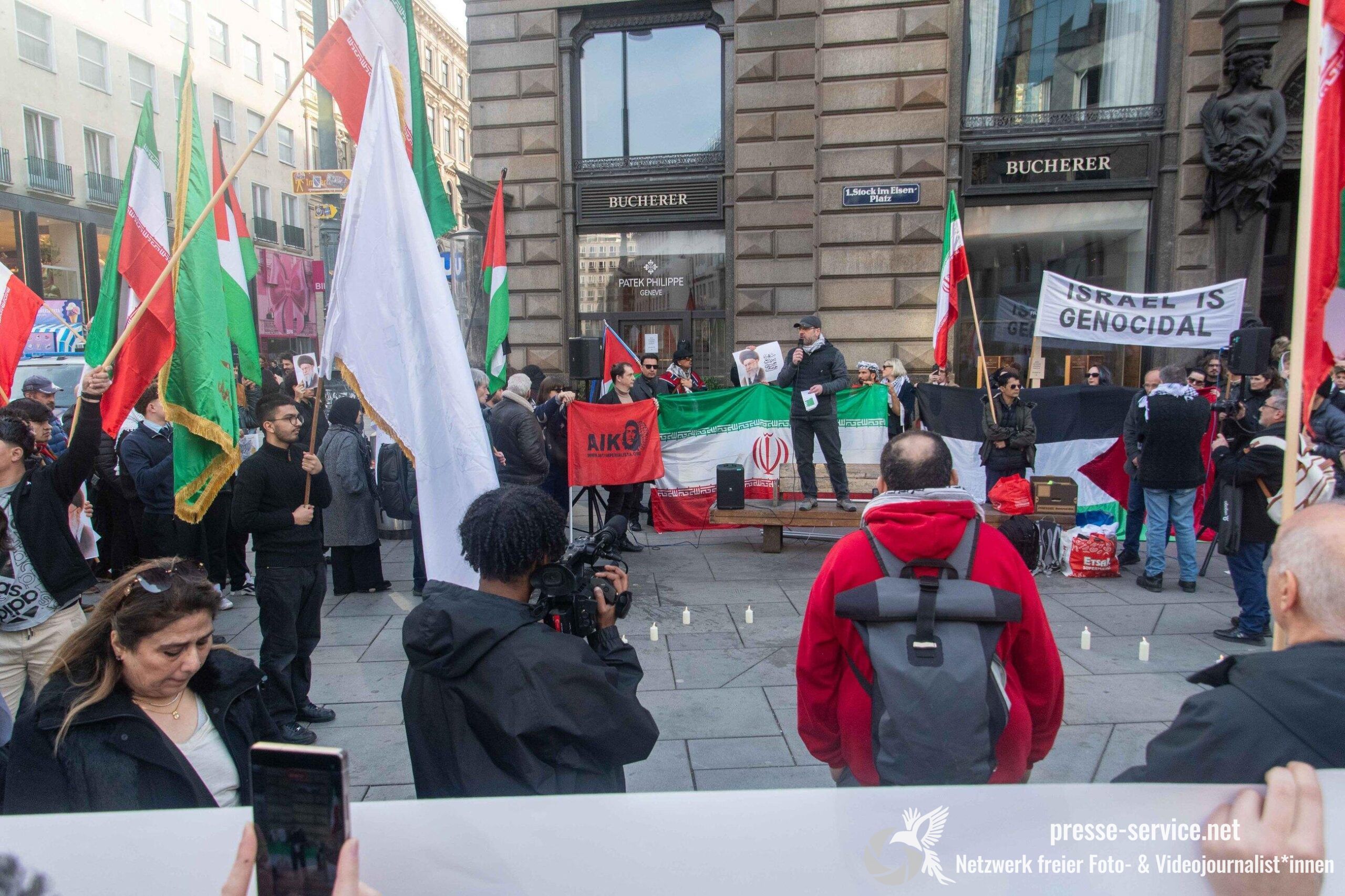 Am 01.03.2026 fand am Wiener Stock-Im-Eisen-Platz eine Solidaritätskundgebung für das islamistische Regime im Iran statt. Anlass war die Offensive der USA und Israels gegen den Iran, die seit dem 28.02.2026 andauert. Zur Kundgebung riefen u.a. die linken antisemitischen Gruppen „Antiimperialistische Koordination“ sowie „Palästinasolidarität“ auf. Insgesamt haben rund 25 antiisraelische Gruppen und Organisationen, etwa „Kommunistische Jugend Österreich“ (KJÖ), „Palästina Komitee“, „Stimmen für Neutralität“ sowie die „Föderation demokratischer Arbeitervereine aus der Türkei“ (DIDF) und „Linkswende“ die Kundgebung unterstützt bzw. zu dieser mobilisiert.