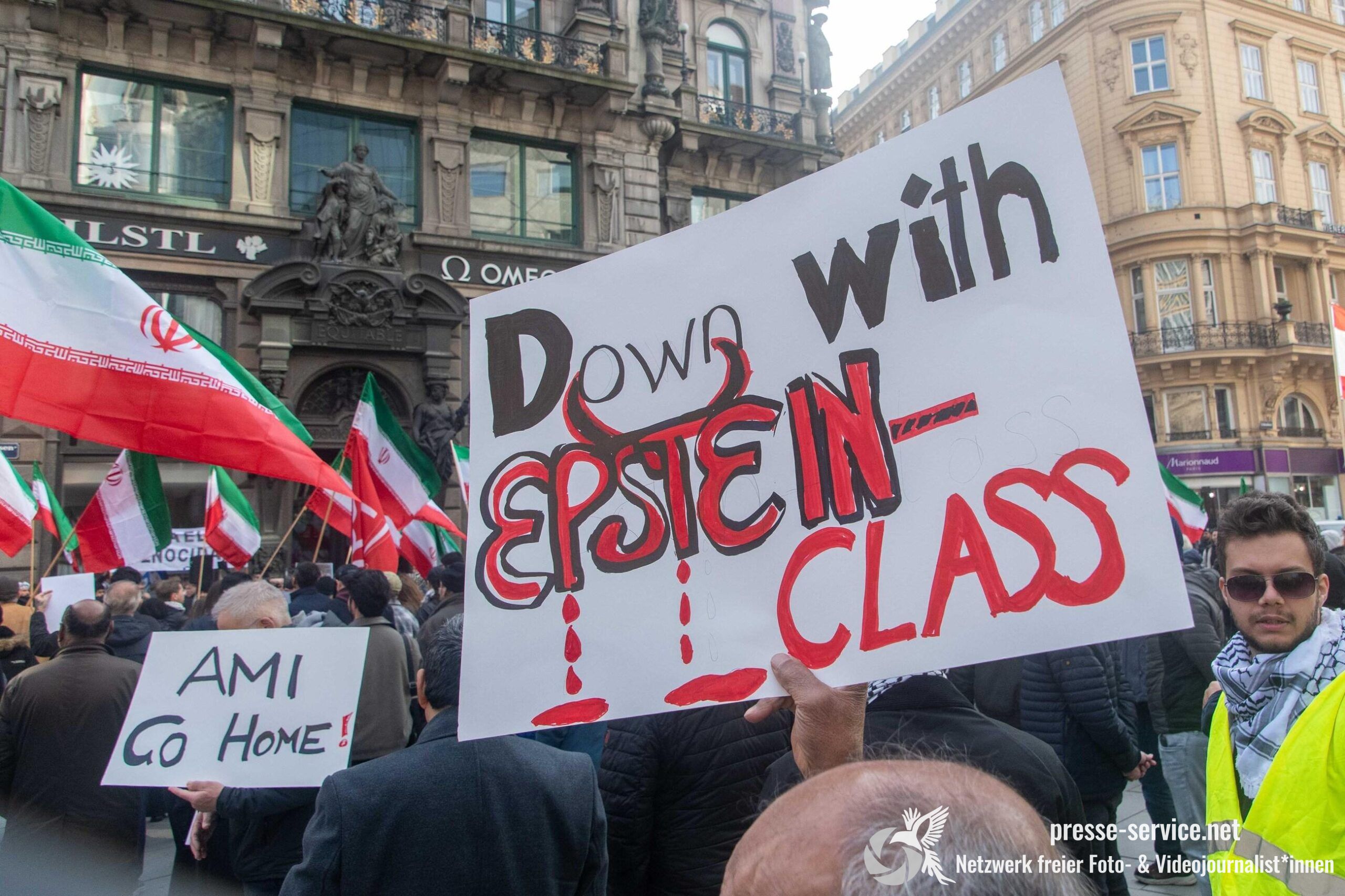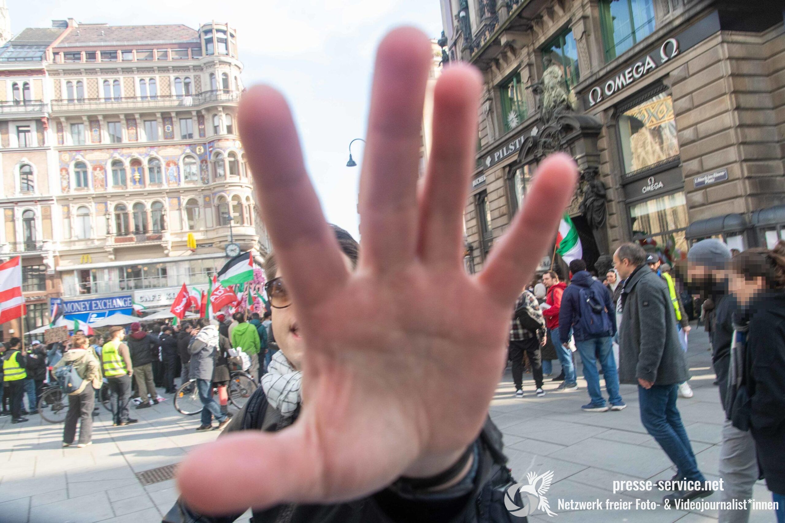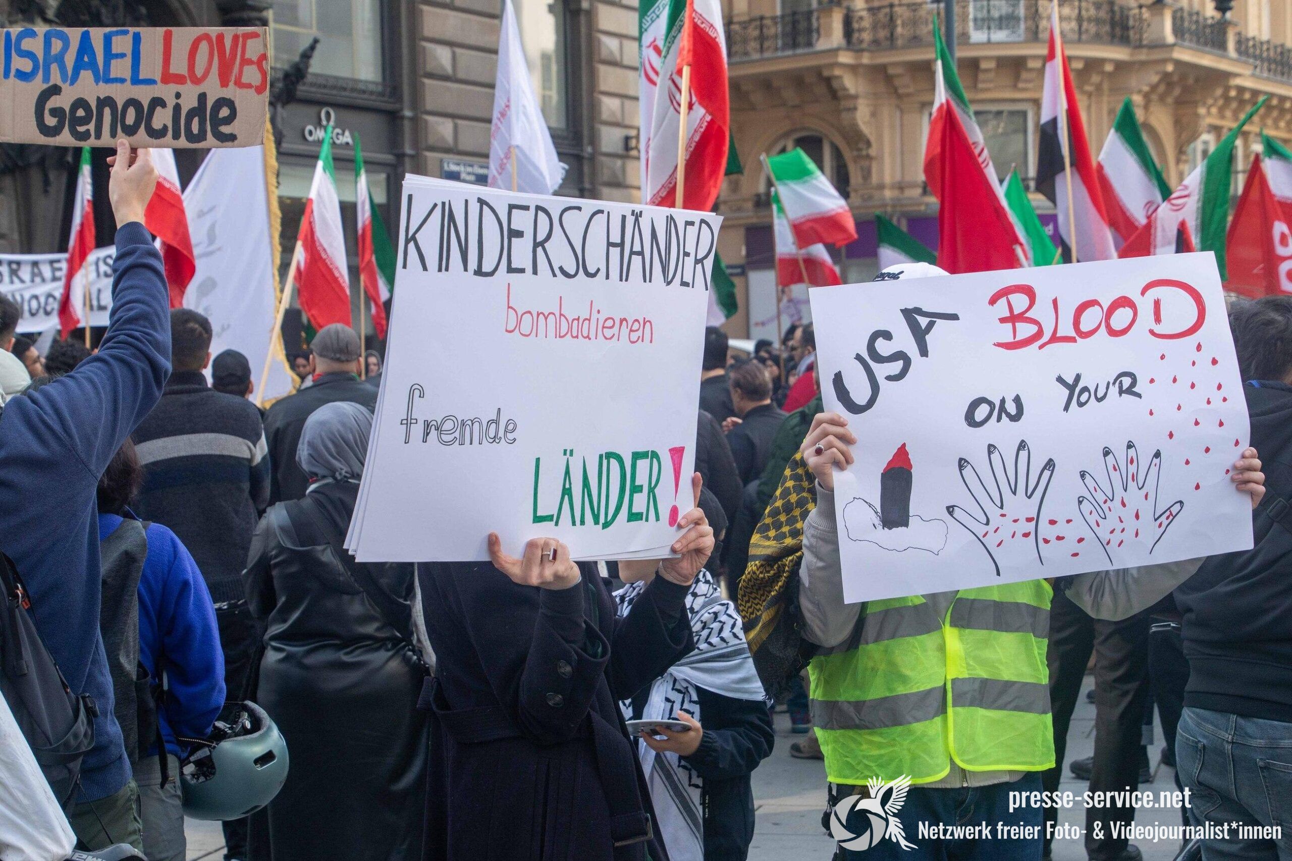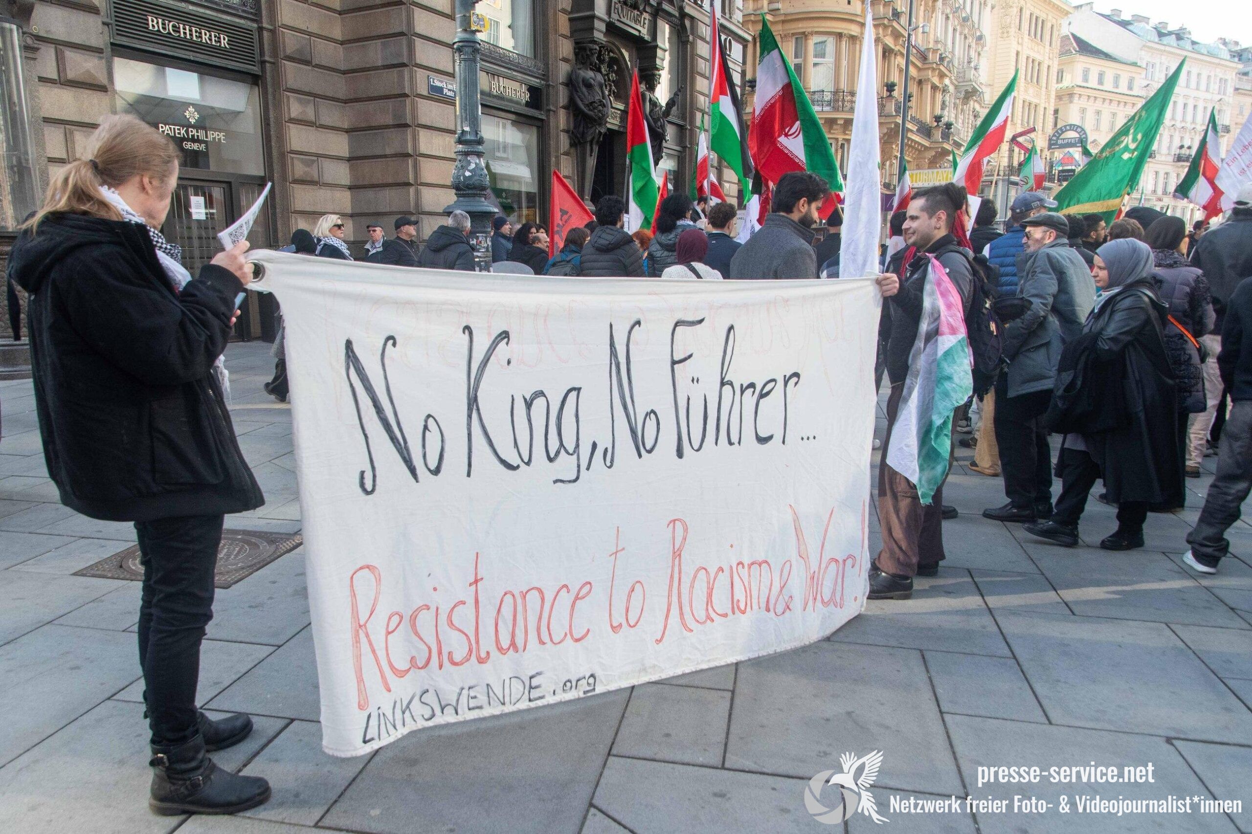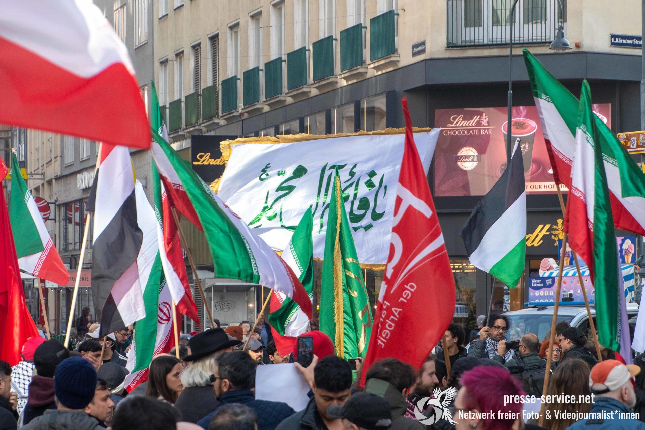Am 01.03.2026 fand am Wiener Stock-Im-Eisen-Platz eine Solidaritätskundgebung für das islamistische Regime im Iran statt. Anlass war die Offensive der USA und Israels gegen den Iran, die seit dem 28.02.2026 andauert. Zur Kundgebung riefen u.a. die linken antisemitischen Gruppen „Antiimperialistische Koordination“ sowie „Palästinasolidarität“ auf. Insgesamt haben rund 25 antiisraelische Gruppen und Organisationen, etwa „Kommunistische Jugend Österreich“ (KJÖ), „Palästina Komitee“, „Stimmen für Neutralität“ sowie die „Föderation demokratischer Arbeitervereine aus der Türkei“ (DIDF) und „Linkswende“ die Kundgebung unterstützt bzw. zu dieser mobilisiert.